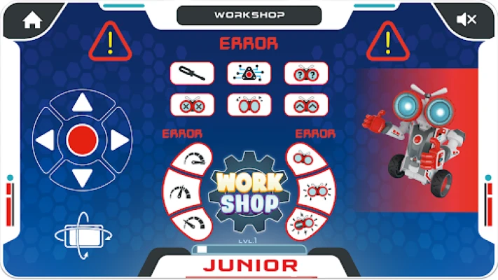 As soon as Junior is assembled, you can begin programming its movements directly on a built-in keypad. You can also download the free Junior app (Android or iOS) to unlock all of the Junior’s capabilities. Did you assemble everything correctly? Play a make-believe robot workshop game in the app to diagnose any onboard issues.
